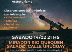 El sábado 14 de Febrero a las 21 horas,desde el mirador del Río Quequen Salado se llevara a cabo una jornada de astroturismo en Marisol. Con telescopios especiales y el acompañamiento del centro astronomico de Monte Hermoso se podrán ver constelaciones,estrellas,etc. La propuesta esta organizada por la Dirección de Producción de la municipalidad de Coronel Dorrego junto al COAMH. Para poder participar hay que inscribirse previamente en la oficina de turismo de Marisol o en https://coamh.com.ar/reservar/directo?schedule_id=44&date=2026-02-14&start_time=21%3A00%3A00. La actividad dependerá de las condiciones climaticas y el punto de encuentro será en…