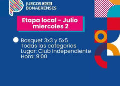 Deportes Municipal informó que dentro de Juegos Bonaerenses 2025, día 16 de competencia, se realizará la etapa local de Básquet 3X3 y 5X5, todas las categorías, hoy miércoles 2 desde las 9 en el Club Independiente.