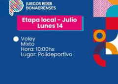 Deportes de la comuna informó que hoy lunes en la Etapa Local de Juegos Bonaerenses se jugará Voley Mixto desde las 10 en el Polideportivo.