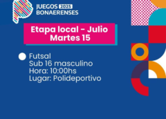 Deportes informó que hoy martes desde las 10 en el Polideportivo se jugará Futsal sub 16 en el marco de la Etapa Local de Juegos Bonaerenses.