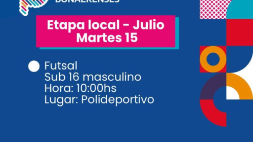 Deportes informó que hoy martes desde las 10 en el Polideportivo se jugará Futsal sub 16 en el marco de la Etapa Local de Juegos Bonaerenses.