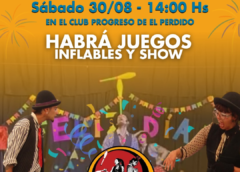 La Municipalidad anunció para mañana sábado 30 en El Perdido el festejo del Día de las Infancias. Será en el Club Progreso desde las 14 con juegos inflables y la presentación del show de La Calaka Circo.