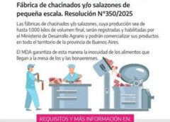 Producción de la comuna informó que la Provincia dispuso una nueva normativa para pequeños y medianos productores de chacinados y/o salazones de pequeña escala. Las fábricas de chacinados y/o salazones, cuya producción sea de hasta 1.000 kilogramos de volúmen final, podrán comercializar sus productores en todo el territorio de la Provincia de Buenos Aires. Para obtener los requisitos y las normativas hay que acceder al siguiente link: https://www.gba.gob.ar/desarrollo_agrario/inicio_de_tramites/industrias_carnicas