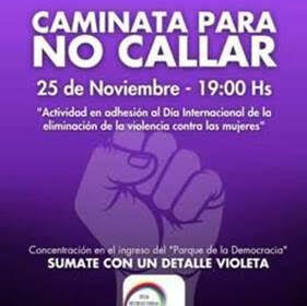 La propuesta, impulsada por la Mesa Intersectorial de Género, se desarrollará hoy martes 25 a partir de las 19, con punto de encuentro en el ingreso al Parque de la Democracia, desde donde se iniciará una caminata hacia la Plaza Central.