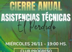 Cultura de la comuna anunció para hoy miércoles 26 a las 19 en el Club Progreso de El Perdido el espectáculo de Cierre Anual de las Asistencias Técnicas que se han dictado durante este año en esa localidad. En tanto el viernes 28 desde las 18 en el Centro Cultural y Museo de Oriente se realizará el cierre de año de las Asistencias Técnicas de: Danzas Árabes, Dibujo, Danza Tango, Italiano, Danzas Folclóricas, Cerámica, Estimulación Cognitiva, Yoga, Restauración de Muebles y Objetos, Gimnasia de Adultos Mayores, Ritmos Latinos…