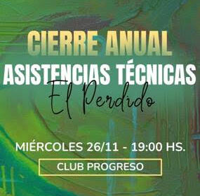 Cultura de la comuna anunció para hoy miércoles 26 a las 19 en el Club Progreso de El Perdido el espectáculo de Cierre Anual de las Asistencias Técnicas que se han dictado durante este año en esa localidad.