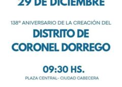 Leer másEl 29 de Diciembre se conmemora un nuevo aniversario del distrito de Coronel Dorrego