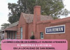 La Dirección de Desarrollo Humano de la comuna a través de su titular, Luciano Ripoll, informó que mañana miércoles 15 atenderá a los vecinos de San Román en esa localidad. Será desde las 9 en el edificio de la Estación.