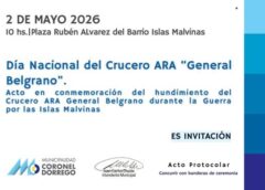 La Municipalidad anunció para el venidero sábado 2 de mayo a las 10 en la Plaza Rubén Alvarez del Barrios Islas Malvinas el Acto Oficial por el Día Nacional del Crucero ARA General Belgrano. Según indicó Protocolo de la comuna, se invitó a concurrir con banderas de ceremonia.
